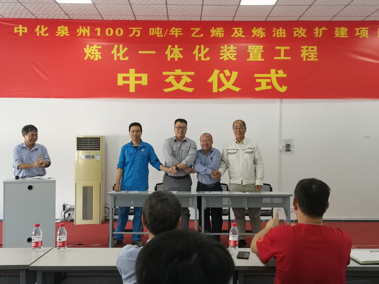 2020年07月30日11:00,在EPC总承包SEI会议室顺利举行了炼化一体化装置工程中交仪式。中化乙烯项目副总经理、芳烃项目分部总经理、华夏监理总监、EPC项目主任、承包商中油七建项目经理、承包商十公司项目冻等50多人参加,仪式上各单位代表进行了发言并签署了《工程中间交接证书》。