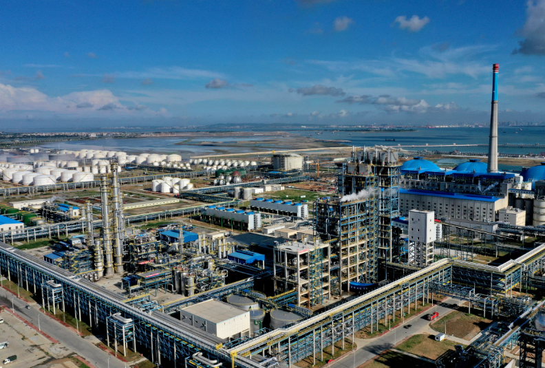 2020年9月12日15时,中科炼化一体化项目煤制氢装置打通全流程,产出合格氢气,纯度99.99%,氢气产量56000标立/小时,15时28分成功并入全厂氢气管网,至此煤制氢装置一次开车成功。