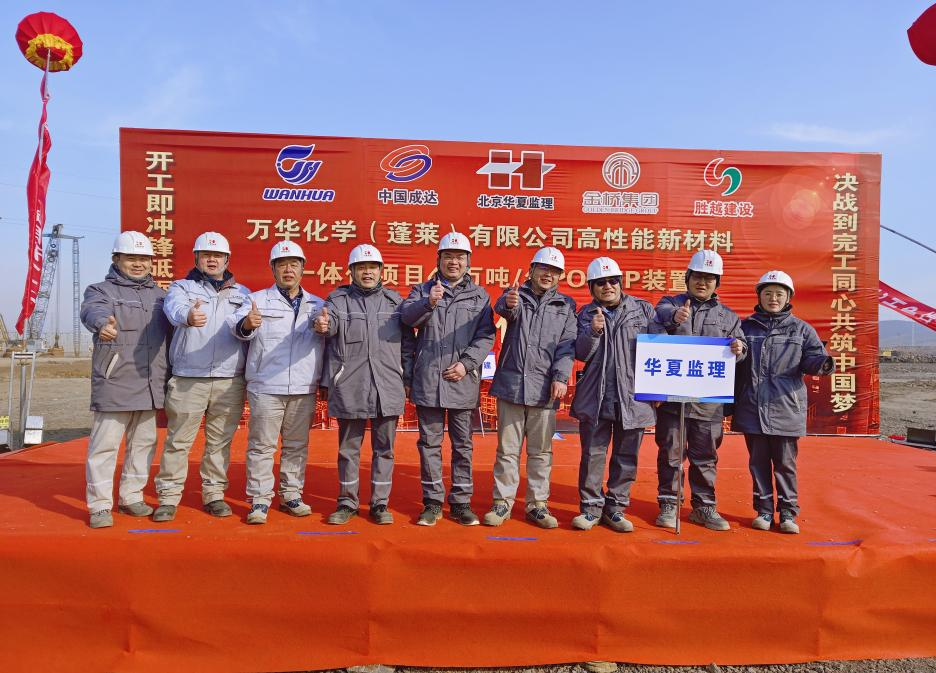 我公司副总经理孙国斌在开工仪式上表态:华夏监理将严格遵循“守法、诚信、公平、科学”的职业准则,紧紧围绕万华2023项目年的总体目标,组建精干高效、专业配套的监理团队,严格履行监理工作程序,以九大管理体系为主线、以信息化平台为手段、不断提升项目管理水平,夯基础、抓重点、强执行、上台阶,建设高质量精品工程。项目前期我们积极配合业主开展工作,主动协调现场的场坪事宜,及时审批完成烟台金桥、山东胜越等各施工单位开工资料,经过各参建单位不懈的努力,万华(蓬莱)POCHP项目已具备了开工的条件。