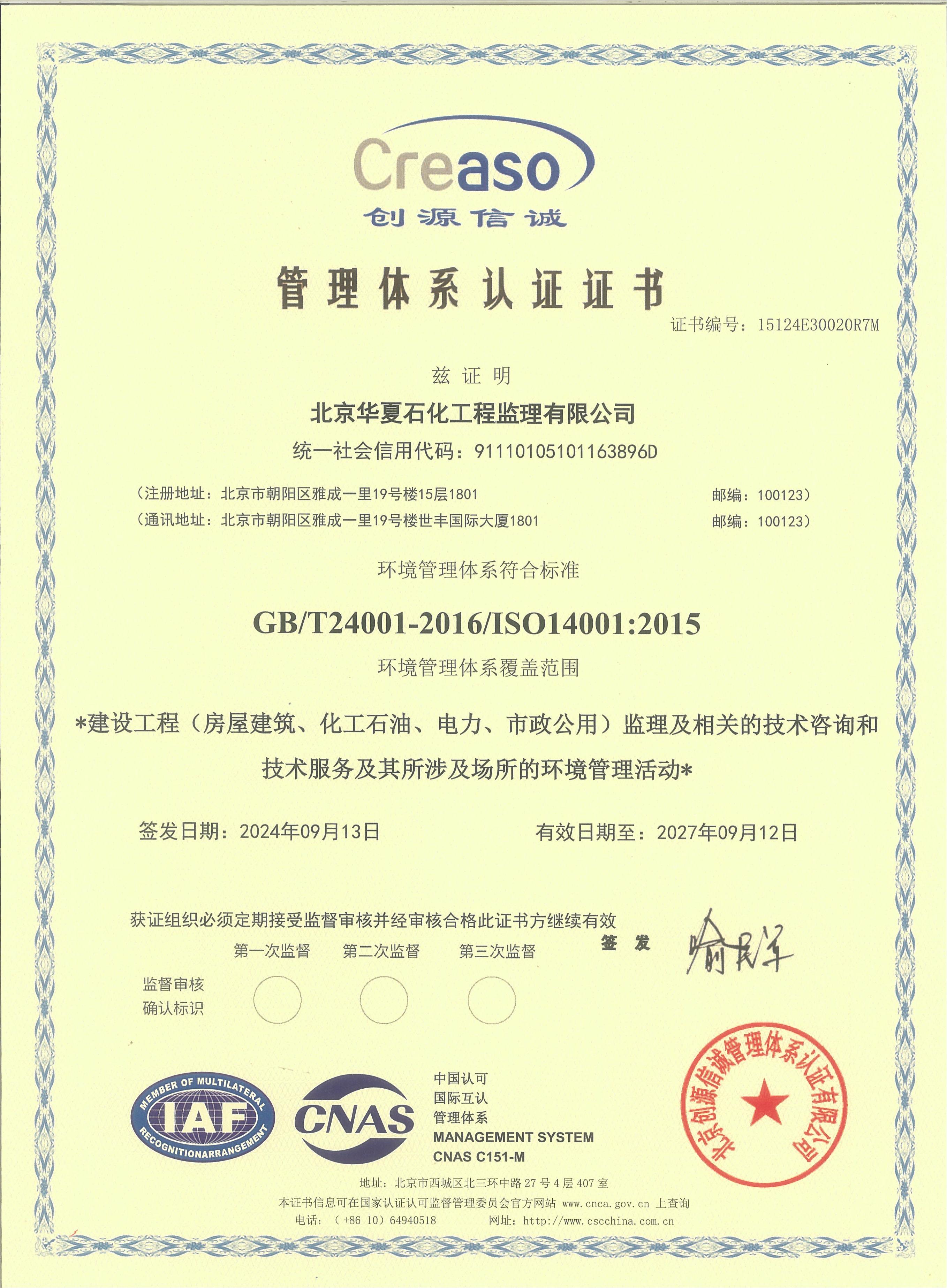 公司拥有化工石油、房屋建筑工程、市政公用工程、电力工程监理甲级资质,设备监理甲级资质,港口与航道工程监理乙级、机电安装工程监理乙级资质,并取得了GB/T24001 -2016/TSO14001:2015环境管理体系、GB/T19001 2008/1S09001 ; 2008质量管理体系和GB/T45001- 2020//1S045001 ; 2018职业健康安全管理体系的认证。